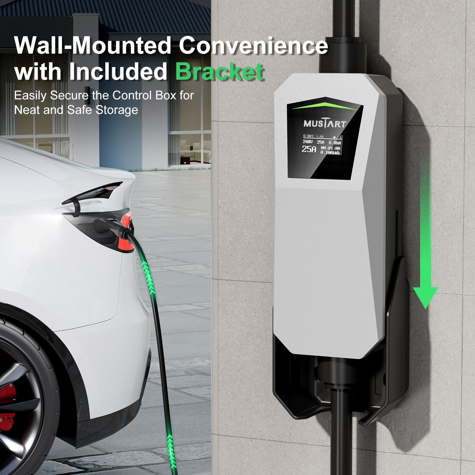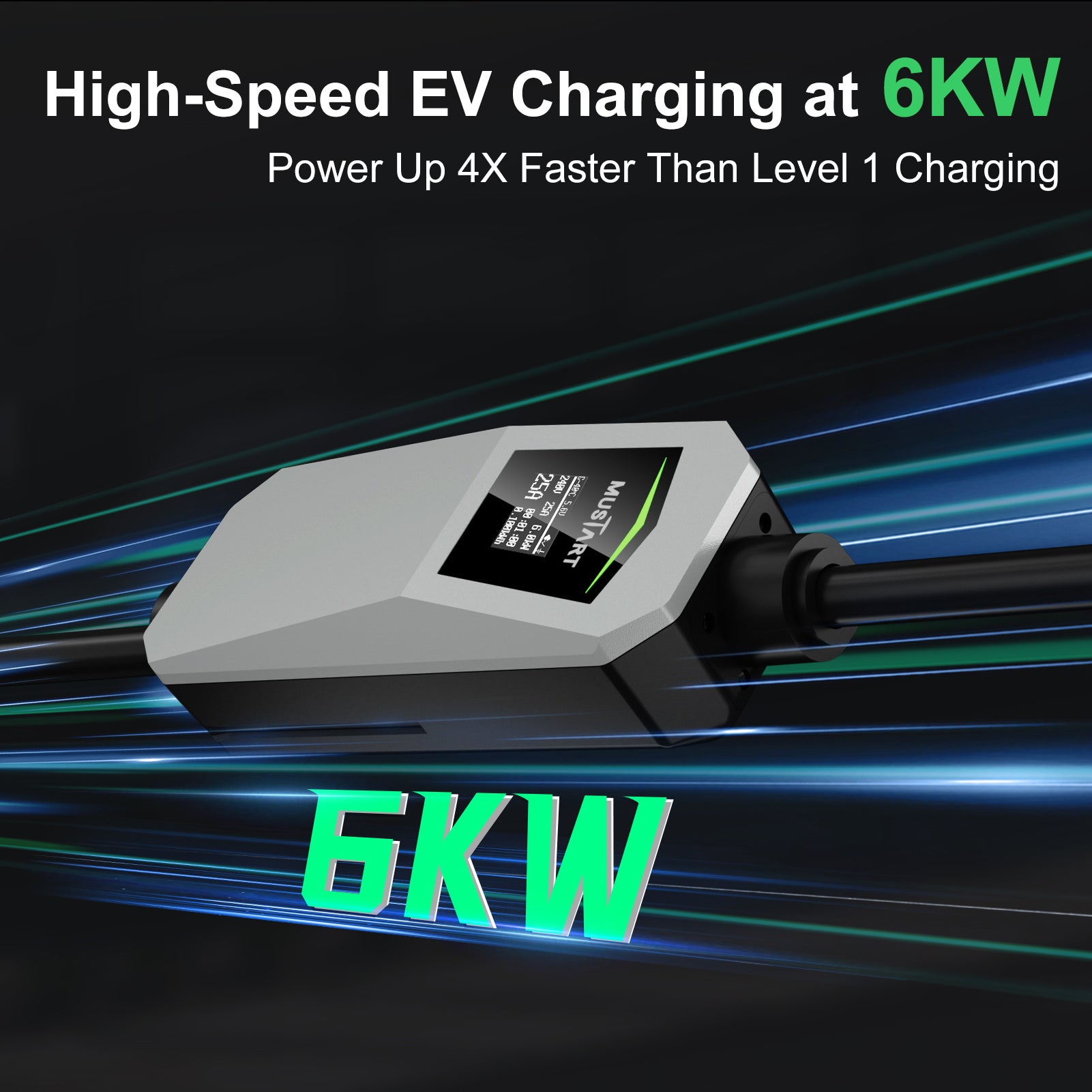 Fast Charging with 6KW Power - Charge your Tesla faster with the MUSTART Level 2 Tesla Charger, delivering up to 25A current through a NEMA 14-30 plug. The total 21ft cable offers extended reach for versatile use at home or on the go.