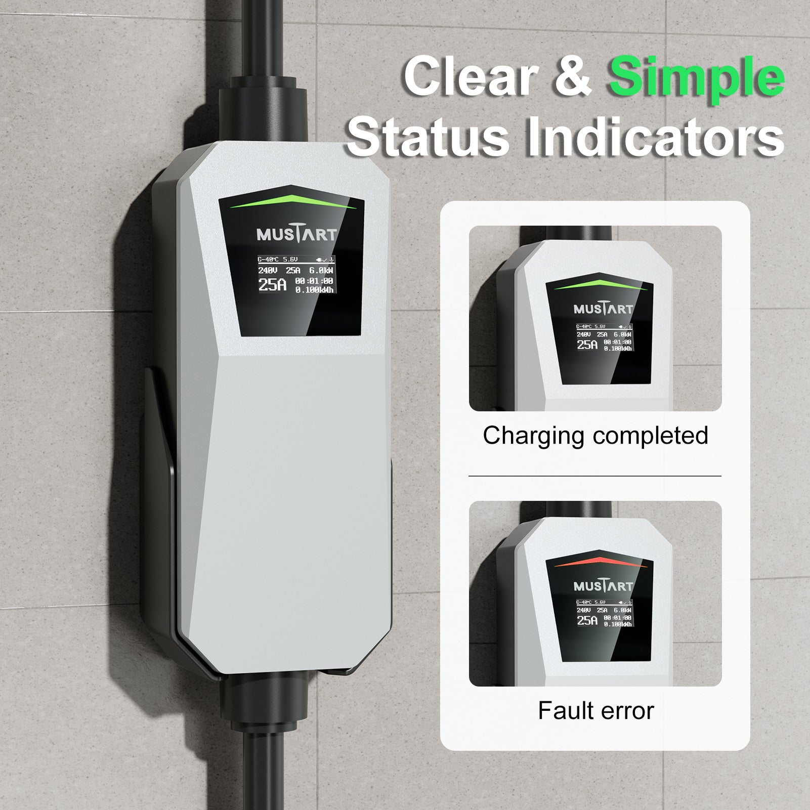 Portable, Convenient, and Easy to Use - Lightweight and designed for on-the-go use, this charger features a simple plug-and-play operation with clear indicator lights. It's perfect for home, office, or public charging stations, offering total convenience wherever you need it.